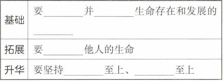 1.×。在灾难面前,生命是脆弱与艰难的,然而当人们万众一心,为挽救生命而努力、为守护生命而拼搏、为悼念生命而默哀时,又会体悟到生命是坚强的、崇高的和神圣的。 2.√ 3.×。生命重于泰山,每个人的生命都比金钱、权势等身外之物更为重要。