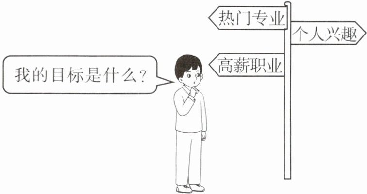 (1)图画中的年轻人在树立人生目标时遇到了什么问题?