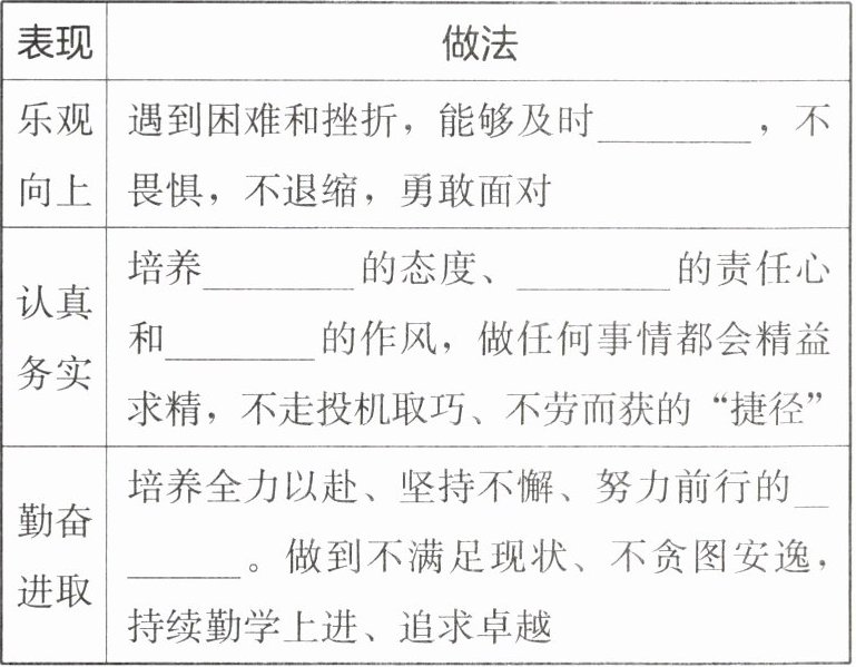 |乐观向上|遇到困难和挫折,能够及时______,不畏惧,不退缩,勇敢面对|