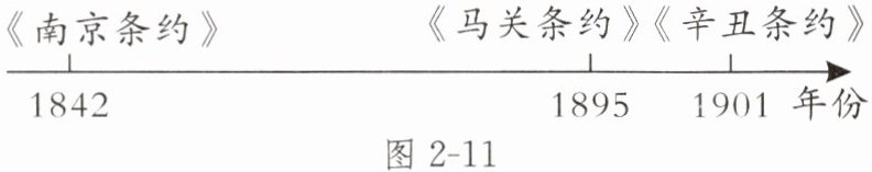 材料三 图2-11是1842—1901年中国近代史上签订的三大不平等条约的时间轴。