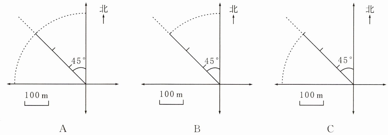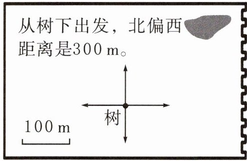 3 小新和小伙伴们玩寻宝游戏时,发现了一张地图,却不小心污损了一处,如右图。小新和小伙伴们仔细分析了剩余的信息,用虚线标出了宝物的全部可能位置,下图正确的是(