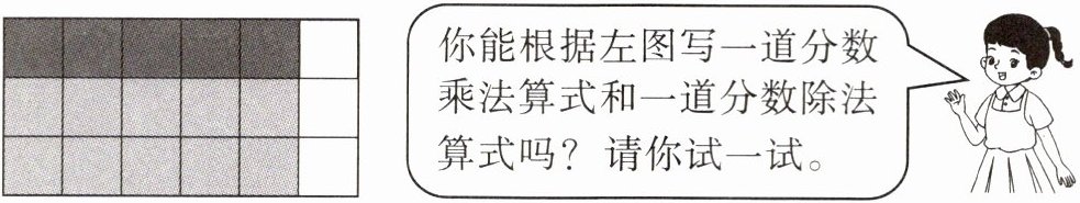 6.(1)$\frac{1}{5}÷2=\frac{1}{10}$ $\frac{3}{7}÷3=\frac{1}{7}$ $\frac{1}{10}<\frac{1}{7}$ 小雨速度更快 (2)小军:$5×\frac{1}{10}=\frac{1}{2}$ 小雨:$5×\frac{1}{7}=\frac{5}{7}$