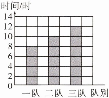 5 玉林素有“岭南美玉,胜景如林”之美誉,其干净整洁的环境离不开园林绿化队的辛勤付出。下图表示的是园林绿化一队、二队、三队每日单独完成绿化带浇水任务所需的时间,请你根据图中的信息算一算。