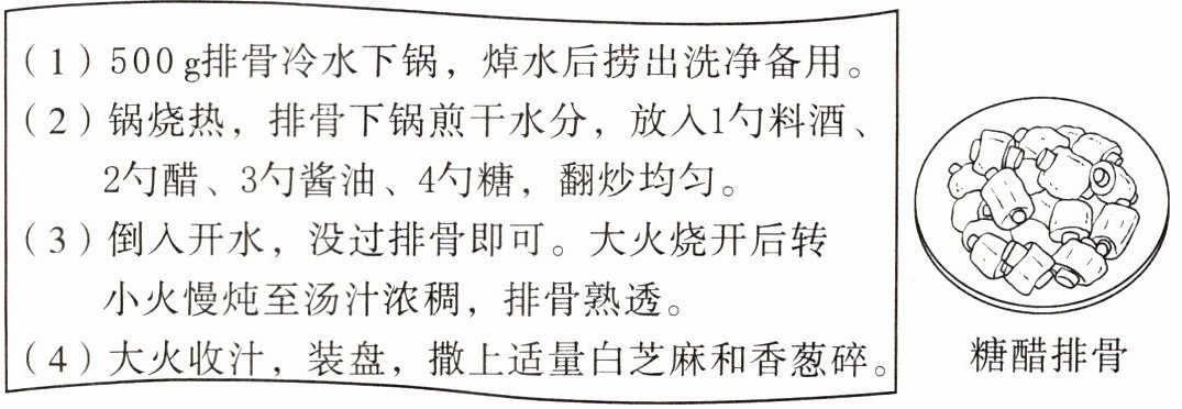 9 你能从糖醋排骨的菜谱中找到“比”吗?试着把它写出来。运用所学知识,还可以回家按照配料比尝试烹饪哦!