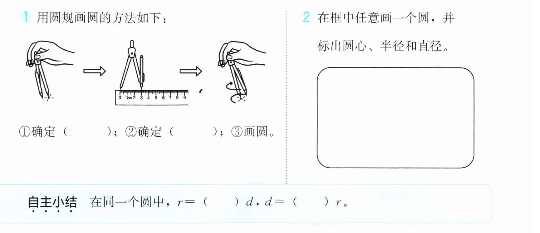 )。(2)用圆规画一个直径是 $ 6 \, cm $ 的圆,圆规两脚间的距离是(