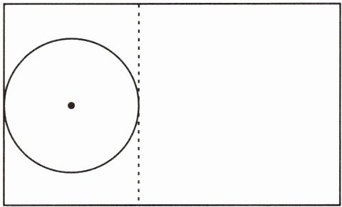 小新在一张 $ 15 \, cm^2 $ 的长方形纸片上剪下了一个小圆,剩余部分沿虚线正好剪下一个正方形(如下图),这个正方形的内切圆直径是 $ 3 \, cm $,被剪下的小圆的半径是多少?(请你先在图中画一画、标一标,再列式计算)
