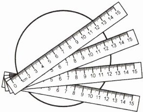 6 小红用一把直尺,通过固定一端移动尺子的方法(如下图),测量出了碗口的直径,这种方法利用的是圆的(