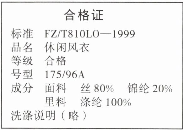 7 如图是一件休闲风衣标签的部分内容,下面说法错误的是(