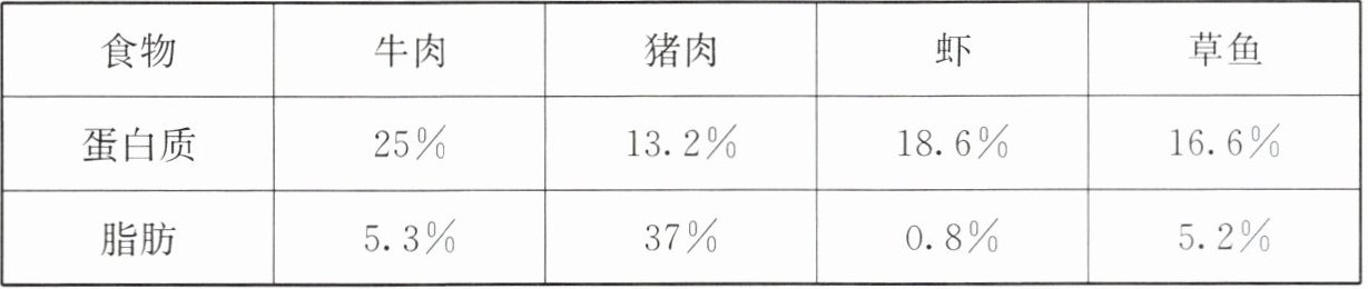 5 下表是几种常见食物中蛋白质和脂肪的含量,根据表中的信息回答问题。