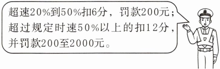 4. 刘叔叔驾车正以 80 千米/时的速度行驶在公路上,前方 100 米隧道口出现限速 50 千米/时的交通标志。如果刘叔叔继续以原速度行驶,他将会受到什么处罚?请你列式说明。