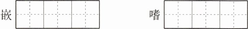 (注:此处应在答题卡对应田字格中规范书写“嵌”和“嗜”二字,确保笔画正确、结构匀称、字迹端正美观。“嵌”为上下结构,上半部分“山”略扁,中间“甘”字居中,下半部分“欠”的撇捺舒展;“嗜”为左右结构,左边“口”字略小偏上,右边“耆”字上部“老”字头笔画紧凑,下部“日”字端正。)