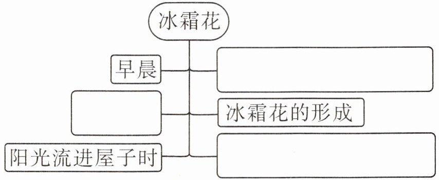 9. 作者在不同时间围绕冰霜花写了哪些内容?阅读短文,完成思维导图。