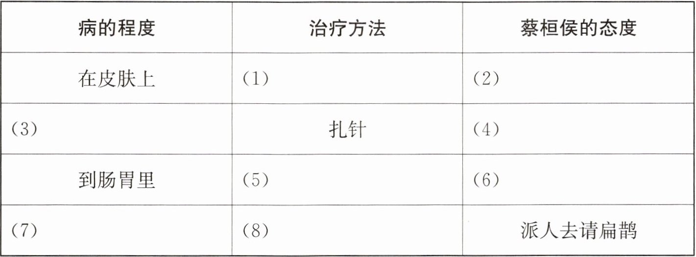 四、根据课文《扁鹊治病》的内容,填写下表。