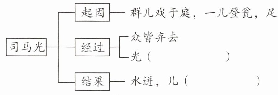群儿戏于庭,一儿登瓮,足跌没水中。众皆弃去,光持石击瓮破之,水迸,儿得活。
