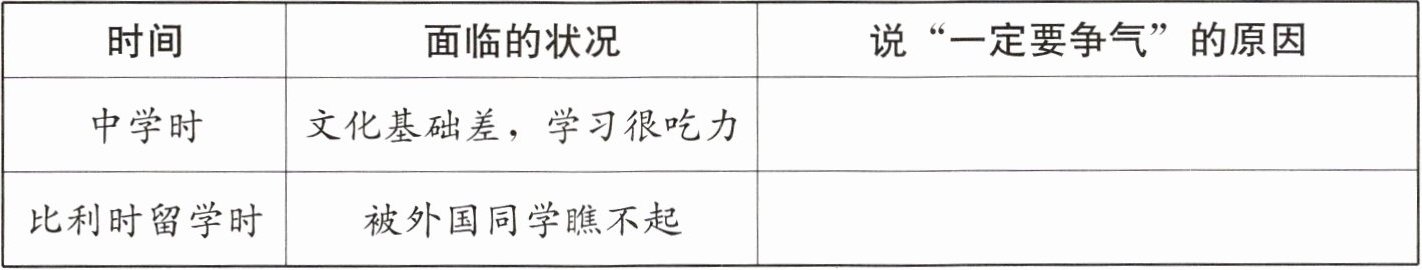1.B 2.[示例]他是一个勤奋努力,不服输,心怀为国家争光的信念的人。