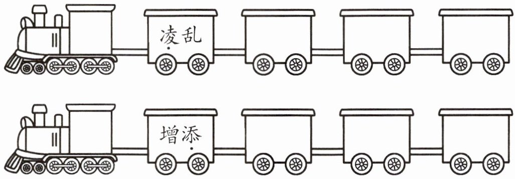 2. 词语小火车。用加点字组词,让小火车开起来。