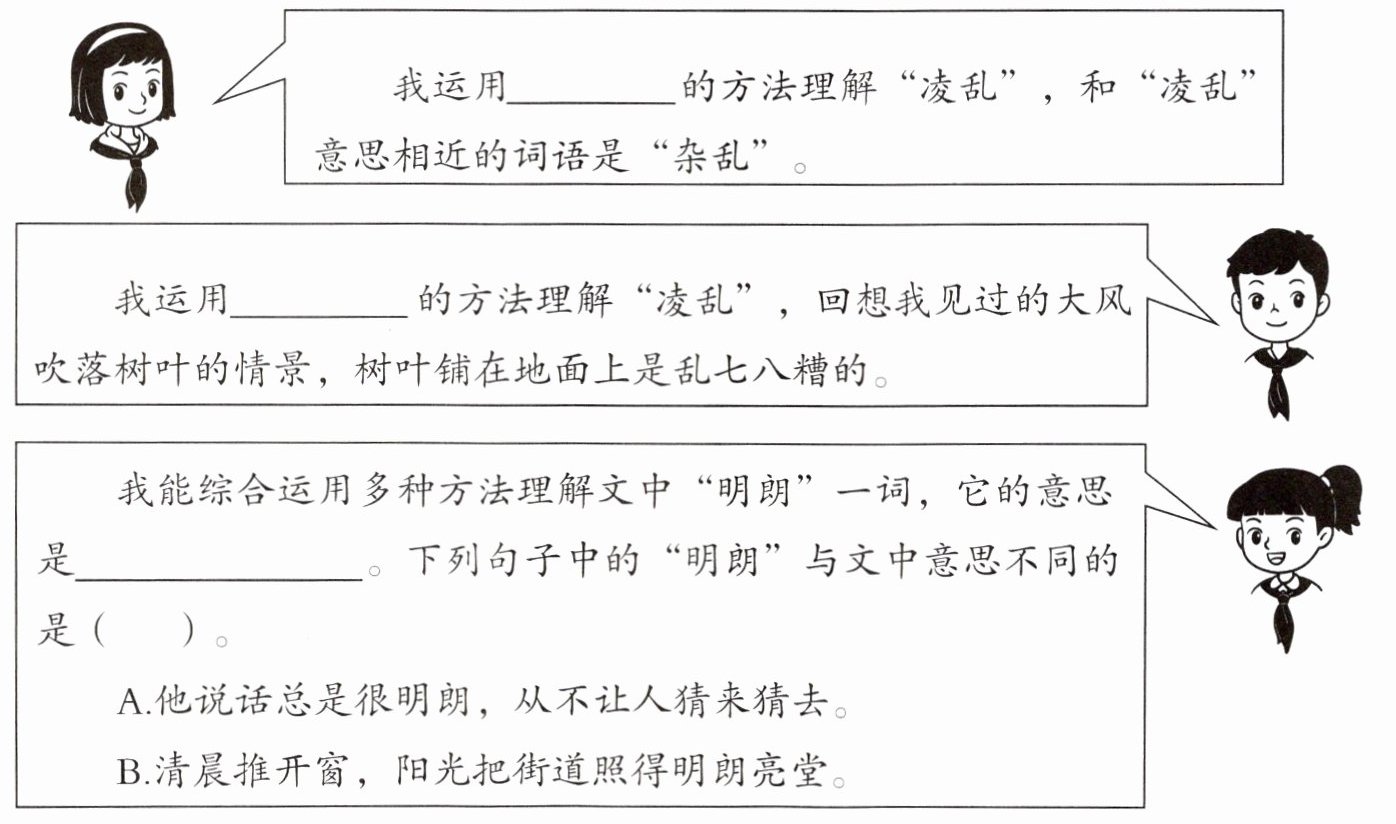 2.[示例]凌晨 凌厉 欺凌 添加 添置 添乱 3.B D 光线充足,明亮晴朗 A
