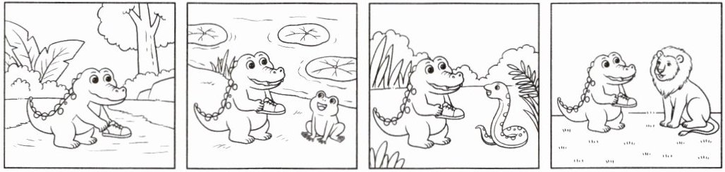 1. C 2. [示例] 鳄鱼捡到一只鞋子,不知道是谁的,于是它开始寻找失主。