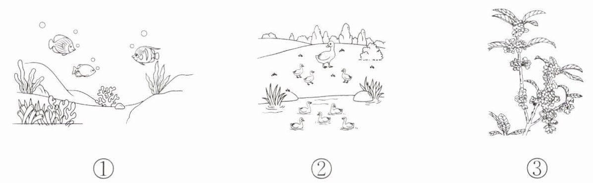 三、小文也想创作自己的“自然之书”,请你选择其中两幅图,仿照以下课文句子写一写。