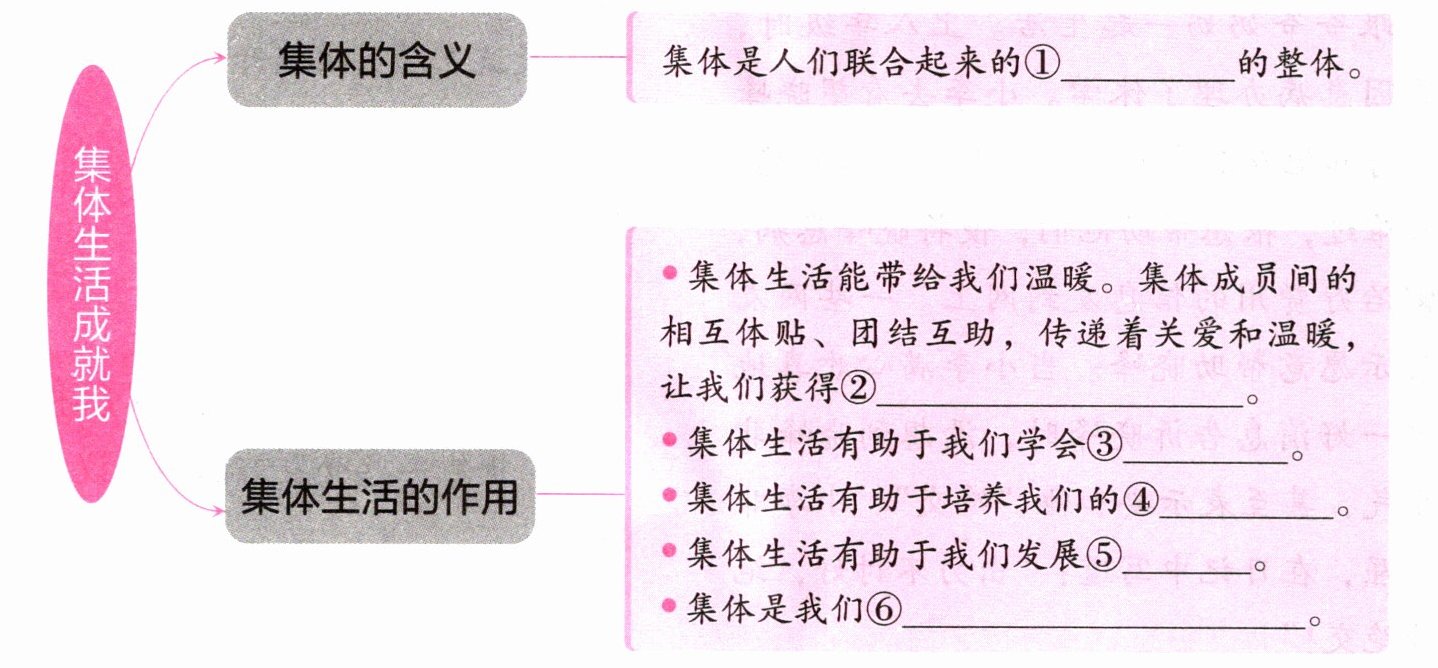 集体生活能带给我们温暖。集体成员间的相互体贴、团结互助,传递着关爱和温暖,让我们获得②______。