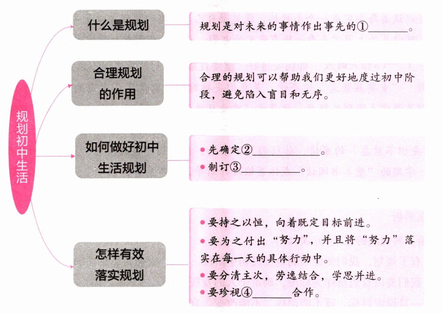 |如何做好初中生活规划:先确定②____。制订③____。|