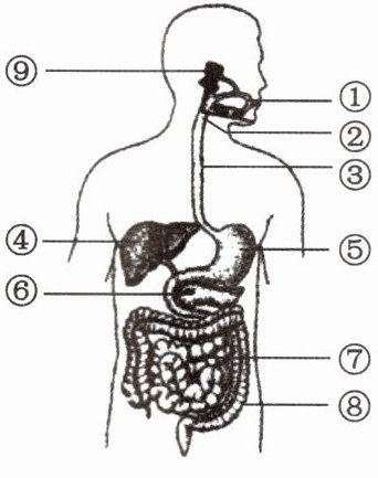 (9) [⑥] ______分泌胰液,经导管进入小肠。