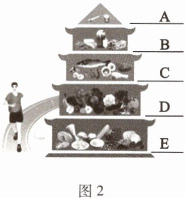 (3)某学生因偏食出现牙龈出血等症状,根据所学生物学知识,你会建议该学生多摄入图 2 中______(填字母序号)层食物,该层食物中所含的______可以减少并预防牙龈出血。