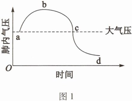 19. 图1为呼吸过程中肺内气压的变化曲线图,图2为相关结构变化的模型,下列有关叙述正确的是( )