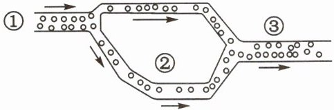 1. 如图为同学们利用橡胶管、红色塑料珠和清水制作的人体血管模型,箭头表示水流方向。下列说法正确的是( )