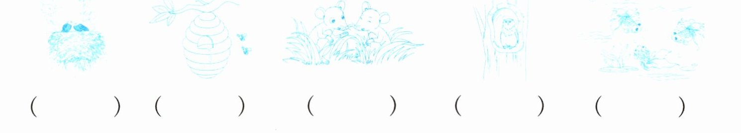 二、班会课上,同学们谈论了不同动物的住所。听录音,按你所听到的顺序用数字1~5给下列图片标号。
