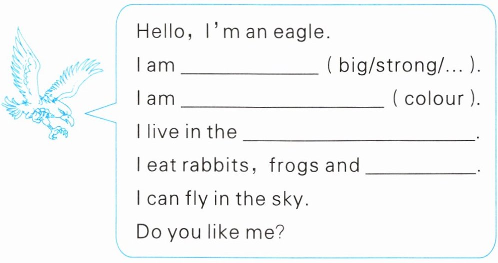 六、动物的住所和它们的生活习性有着密不可分的关系。请写出合适的内容,帮助老鹰完成它的自我介绍吧。