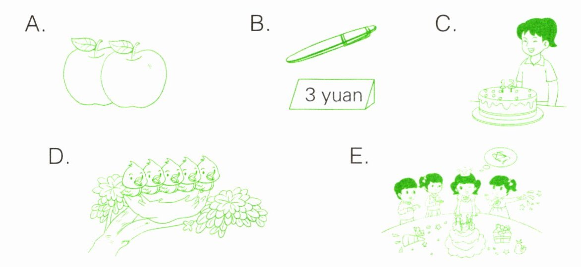 四、生活中很多场合会用到数字。将下列图片和句子进行匹配。(填序号)