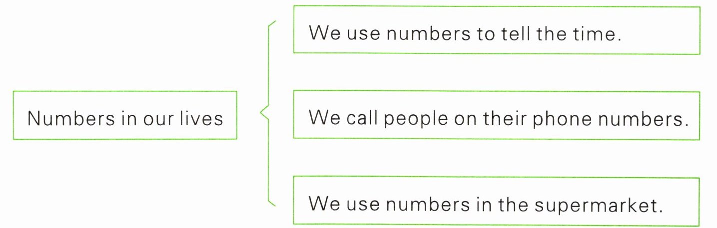 一、生活中处处有数字,你知道数字有哪些用途吗?根据思维导图提示并结合课本第 30 页 Numbers in our lives 的内容,回答问题。