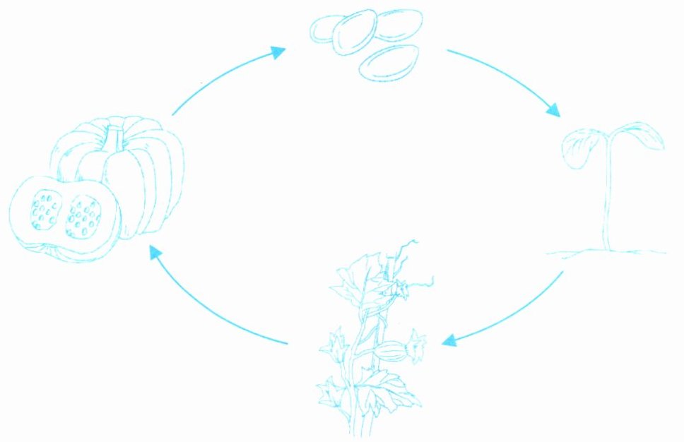 六、根据南瓜生长循环图和中文提示,帮小晋完成观察笔记。