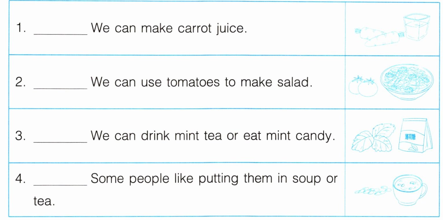 二、结合课本第 60 页 Useful plants 的内容,选择合适的句子完成表格。