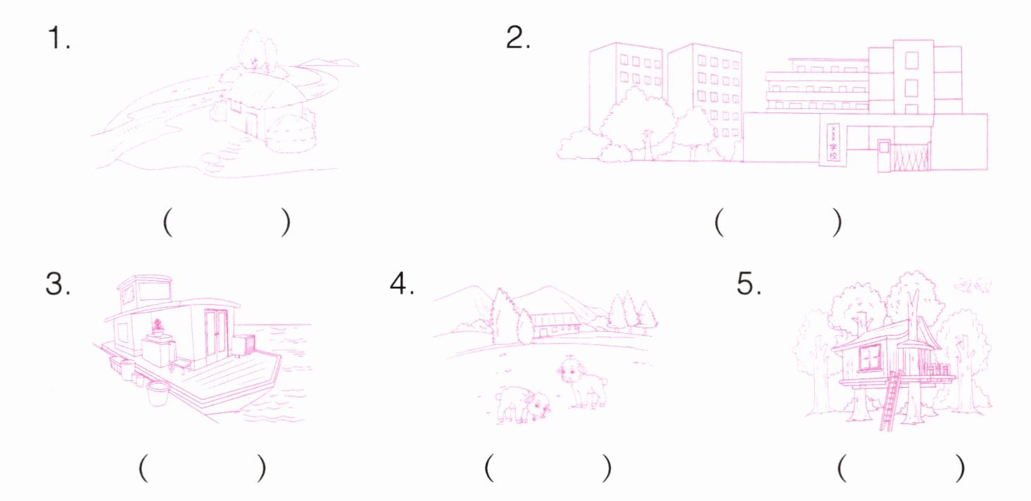 五、请你帮小美找找她朋友的家吧。将下列图片和句子进行匹配。(填序号)