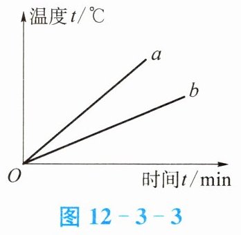 8. 质量相等、初温相同的水和酒精,分别用两个相同的加热器加热(不计热量损失),加热过程中温度随时间的变化图像如图12-3-3所示,下列关于$a$、$b$两种液体的鉴别结论中正确的是(
