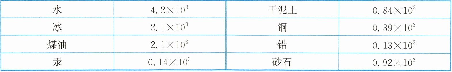 )。|水|$4.2× 10^{3}$|干泥土|$0.84× 10^{3}$|