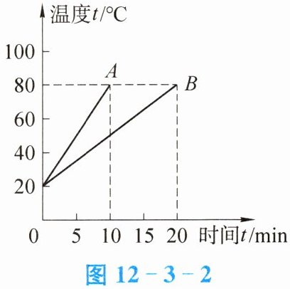 4. 在“比较不同物质吸热能力”的实验中,向两个相同的烧杯内倒入初温和质量都相同的甲、乙两种不同液体,用相同的加热器同时加热,记录相关数据,并绘制成如图12-3-2所示的图像。若两种液体中有一种是水,另外一种液体的比热容比水小,则另外一种液体的比热容为