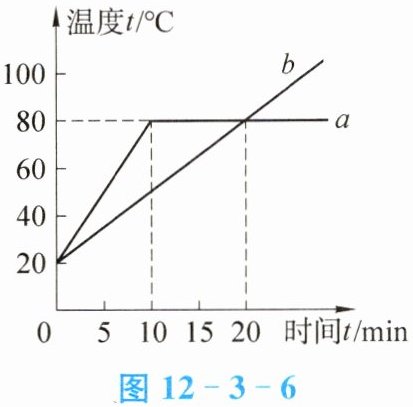 (2)利用其中两幅图可以研究不同物质的吸热能力,根据记录的数据做出了$a$、$b$两种液体的温度随时间变化的图像,如图12-3-6所示。