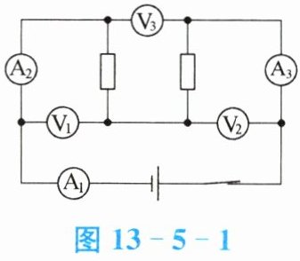 例2 图13-5-1所示的电路中,三个电压表示数$U_1、$$U_2、$$U_3$的关系是