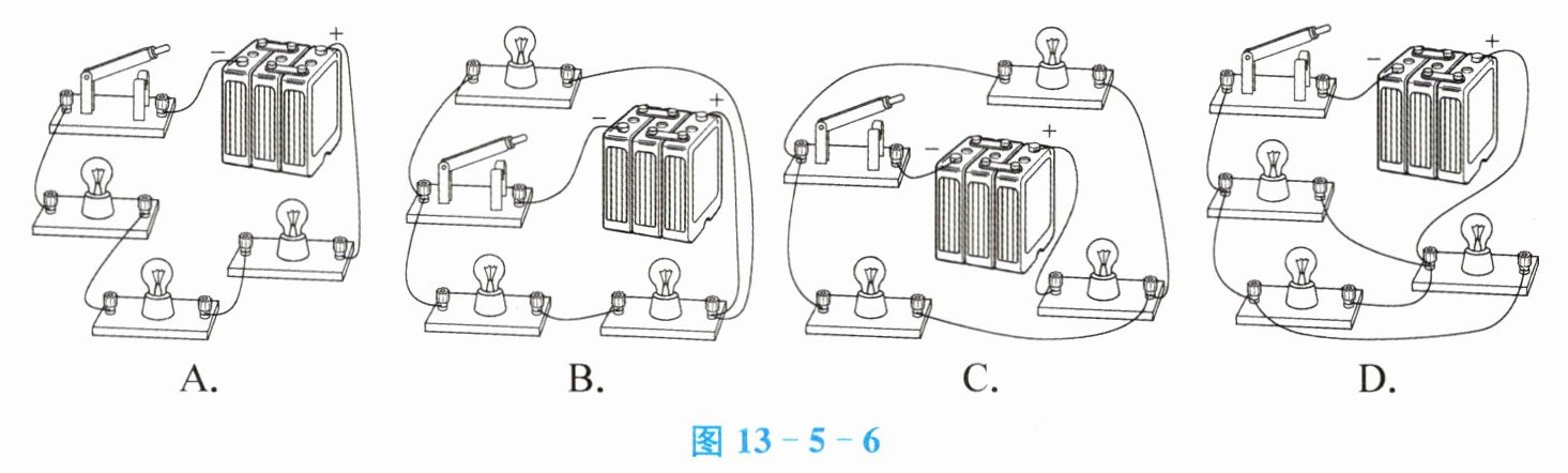10. 如图13-5-6所示的电路中,开关闭合后,三个灯泡的电压一定相等的是(