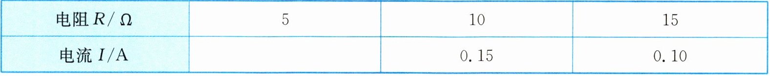 | 电阻$R/\Omega$ | $5$ | $10$ | $15$ |