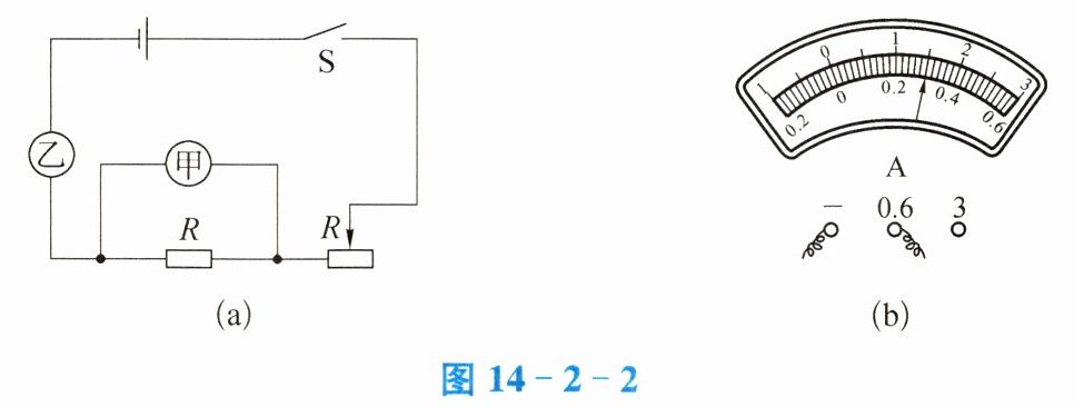 (写出一个即可)。(3) 排除故障后继续实验,闭合开关,移动滑动变阻器滑片,当$5\Omega的电阻两端电压为1.5V$时,电流表的示数如图14-2-2(b)所示,该电流为