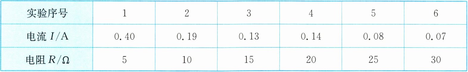 | 电阻$R/\Omega$ | $5$ | $10$ | $15$ | $20$ | $25$ | $30$ |