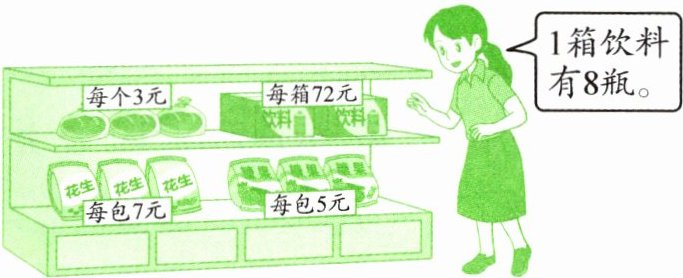 (2)小奇买 6 包花生,付出 50 元,营业员应找回多少元?