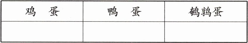 3. 称鸡蛋、鸭蛋和鹌鹑蛋各1千克,分别大约有多少个?把结果填在下表中。