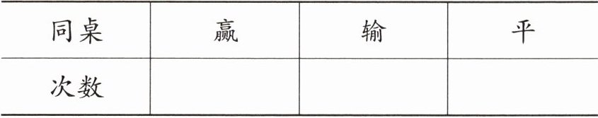 发现:自己赢的次数与同桌输的次数相同,自己输的次数与同桌赢的次数相同,平局的次数相同。