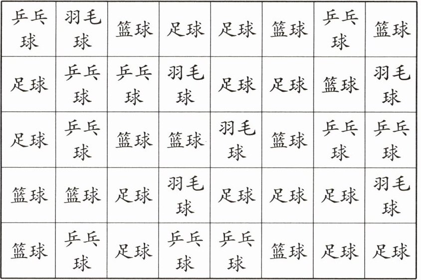 1. 下面是三年级一班同学最喜欢的球类运动情况。