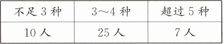 (1) 爱吃的菜的种类,不足3种,3~4种,超过5种,42人,10人,25人,7人(答案不唯一)